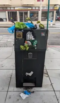 A trash can overflowing with dog poop bags in San Francisco, CA Image from Shutterstock