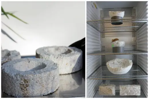 Mycelium breaks down the toxins in cigarette butts and grows into a styrofoam-like material that can be molded into different shapes. (Photos courtesy of PuriFungi)
