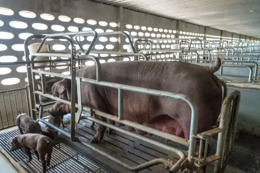 A mother pig in a gestation crate. (Photography by Shutterstock)